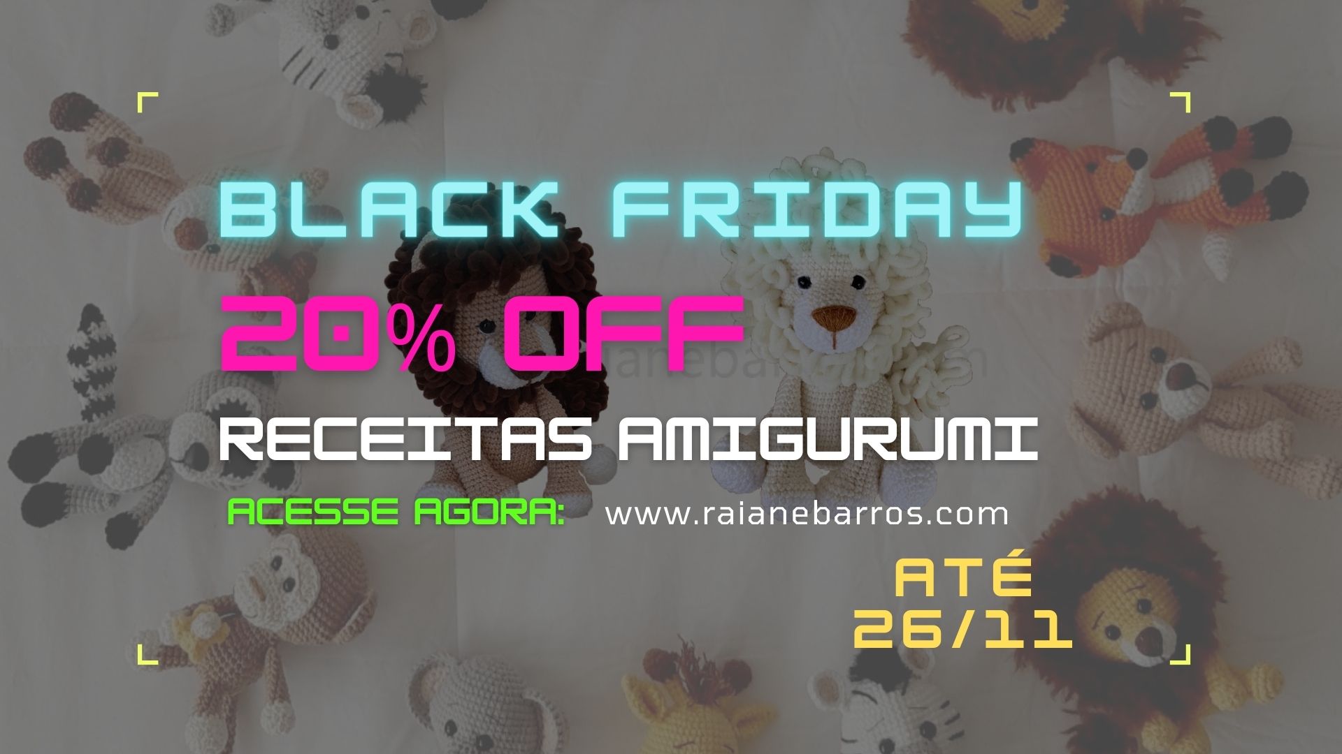 Gente, estamos começando a nossa Black Friday de Receitas Amigurumi 2021, estamos dando desconto em todas as receitas da lojinha, se você não pode comprar antes, agora é a hora. A nossa Black Friday de Receitas Amigurumi vai até dia 26/11, sexta-feira oficial da Black Friday.